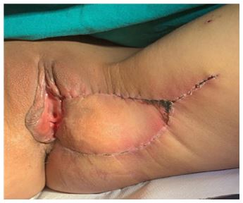 ケガによって外陰部を欠損した場合、2cmまでであれば傷を縫合すればよいですが、2cmを超える場合は美容上、機能上の理由から皮膚の再建手術(皮弁手術)を検討する必要があります。