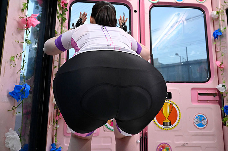 尻を後ろに突き出して乗る前傾姿勢は、女子陸上選手のクラウチングスタートと同様に、背中、尻、太ももの曲線美が強調され、女性としての性的魅力をアピールすることができます(Figure 5、Figure 6)。