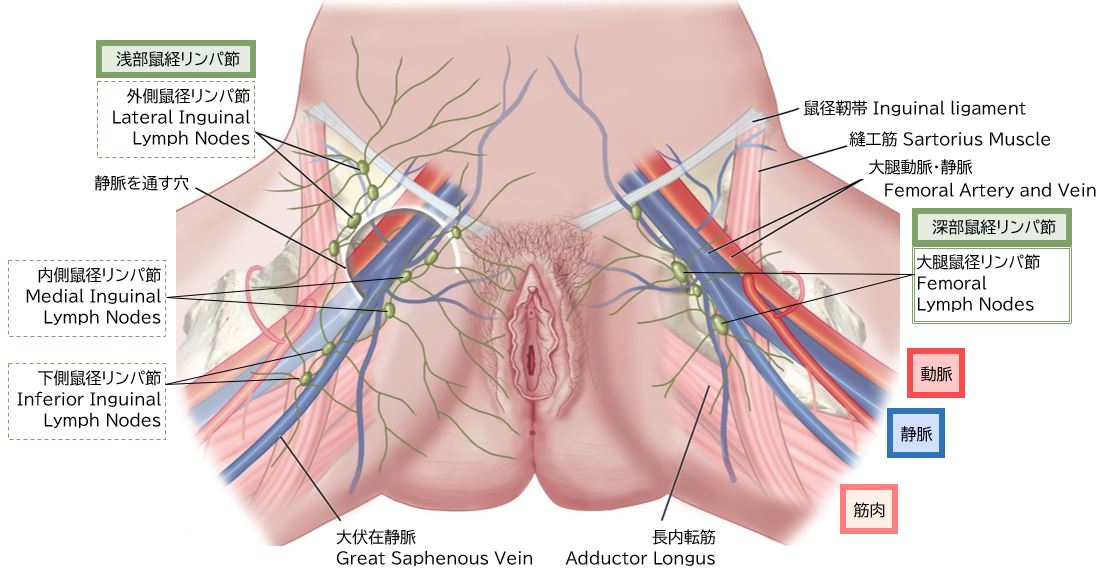 サイクリスト外陰部症候群の主な原因はリンパ系の損傷と考えられています(Figure 14)。坐骨結節付近の腫れも同様のプロセスで発生することがあります。リンパ液や血液の循環障害が起こると、皮膚・粘膜が浮腫状に膨らみ(むくみ)ます。