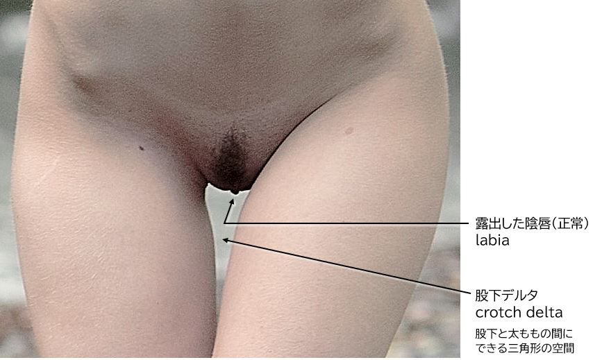 また、ショーツのクロッチ部分から陰唇がはみ出したり、くい込んだりすること(ハミマン、Vagina slip、Figure 8)があります。スキニージーンズや水着のような体にぴったりフィットする服を着るのは不可能です。