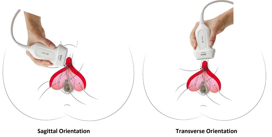被験者は下半身を露出した砕石位(さいせきい、Lithotomy position、Figure 6)の体位をとり、超音波プローブでクリトリス周辺を検査しました。超音波検査中、超音波プローブで性器組織に有意な圧力や性的な刺激を与えることはありませんでした。